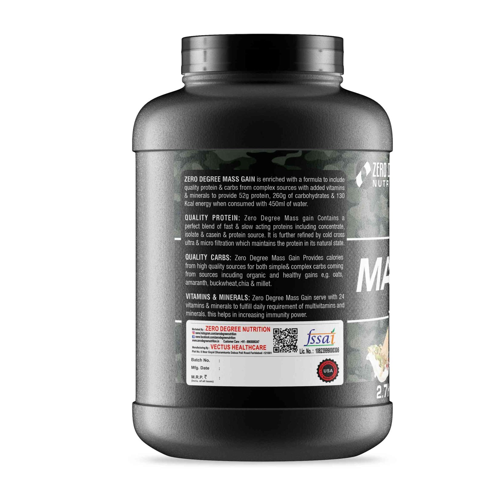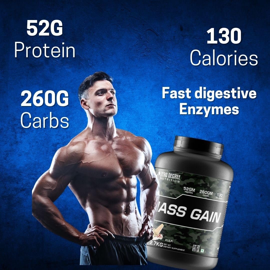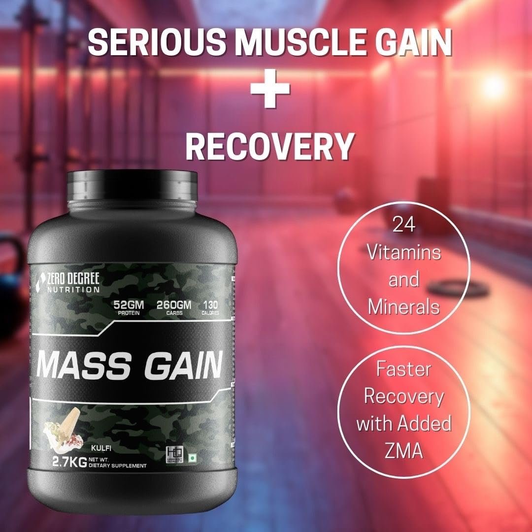 - Zero Degree mass gainer contains protein in each serving which triggers the synthesis of new muscle tissues and boosts muscle recovery. This heavy mass weight gain supplement helps to refill the glycogen reserves in the body which are used as fuel during intense workouts